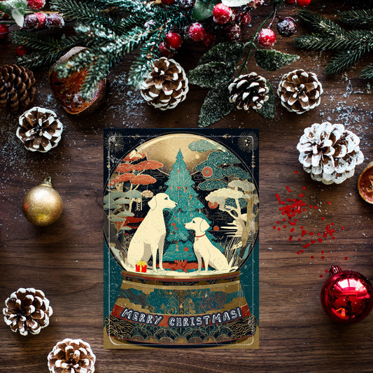 Dog Snow Globe Christmas Card | Japanese Art Holiday Greeting