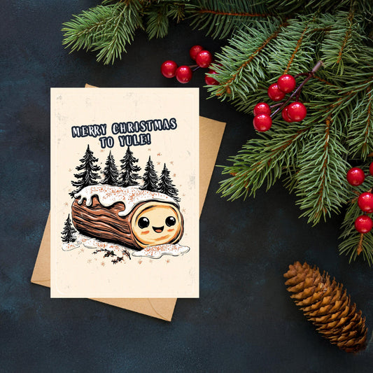 Funny Yule Log Christmas Card, Kawaii Pun Greeting