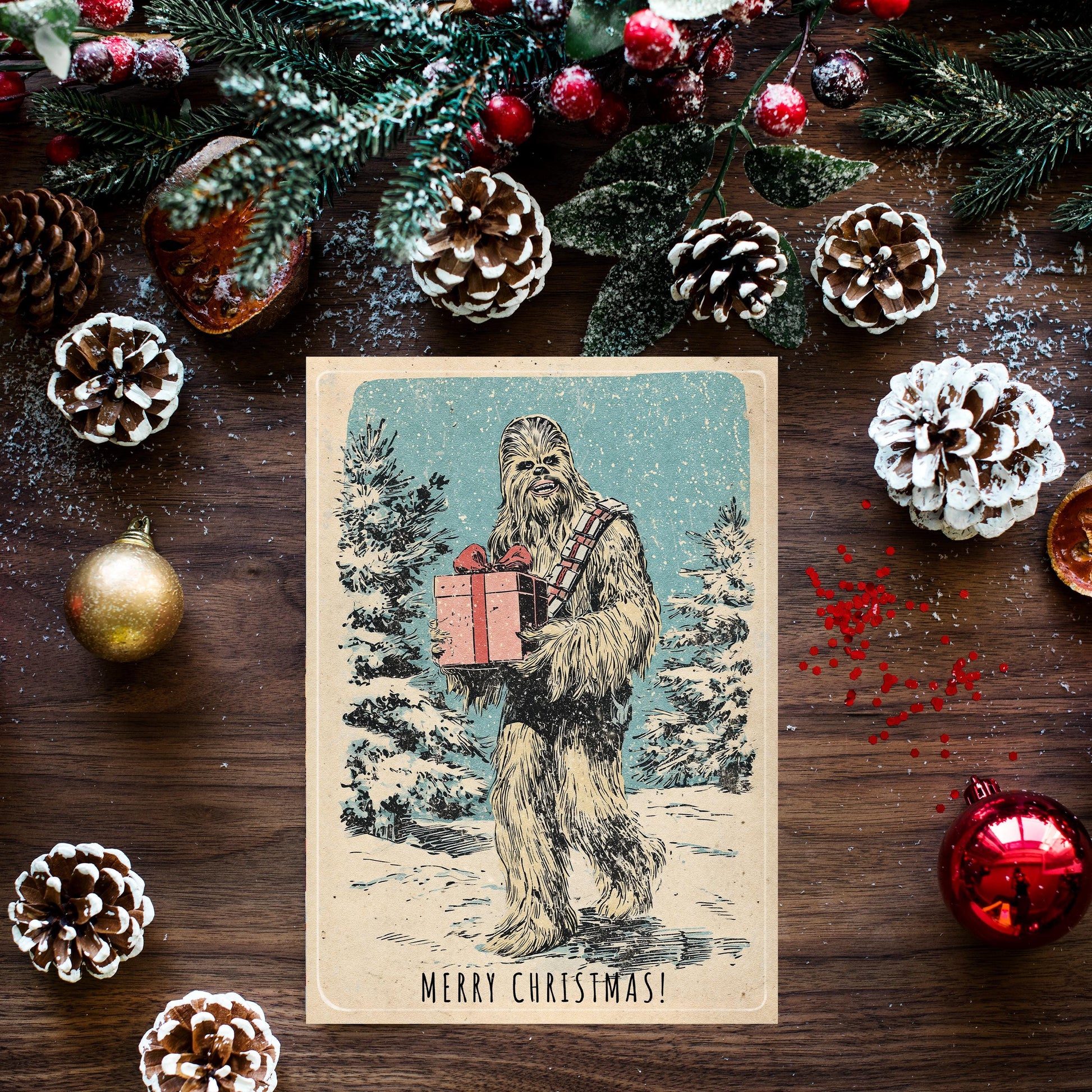 Chewbacca Christmas Card | Funny Star Wars Holiday Card | Wookiee Xmas Greeting | Chewie Art | Geeky Holiday Card 🐾