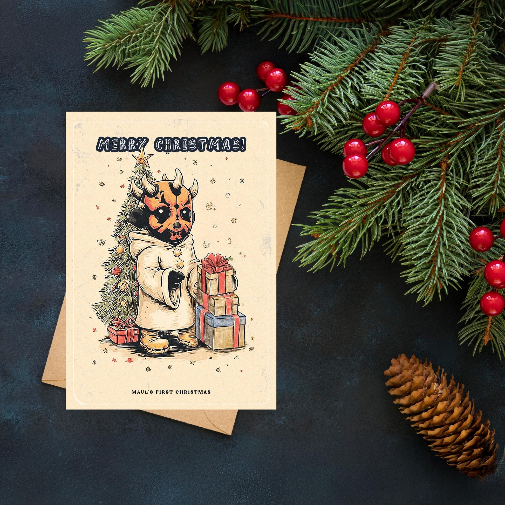 Check out our Darth Maul, Mandalorian, Baby Yoda, Grogu, Star Wars Christmas cards. The perfect Christmas gift for him and her!