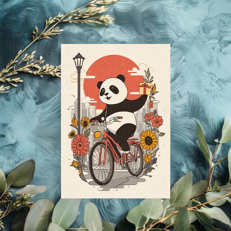✨ Fans of cute animal art Whether they’re an avid cyclist or just love pandas, this card will roll in smiles on their special day!