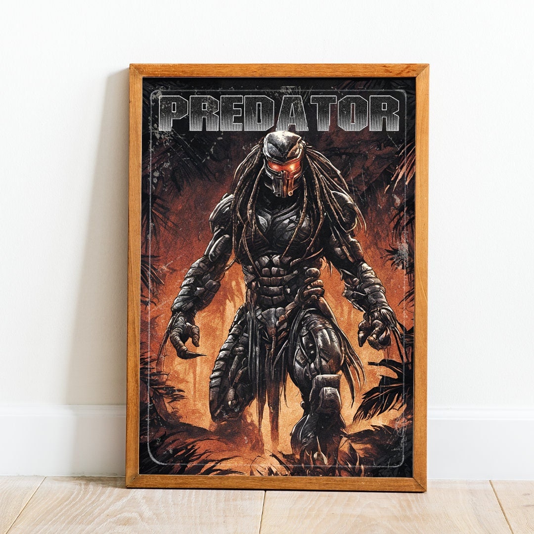 Get ready for a thrilling hunt with our 'Predator' movie poster. Dive into the heart-pounding world of an extraterrestrial hunter stalking its prey. This poster is a must-have for fans of sci-fi action, capturing the suspense and intensity of the film to add a dose of adrenaline to your space. Perfect wall art for movie rooms, office, bedroom decor, and man caves. This poster is durable enough to be up without a frame.